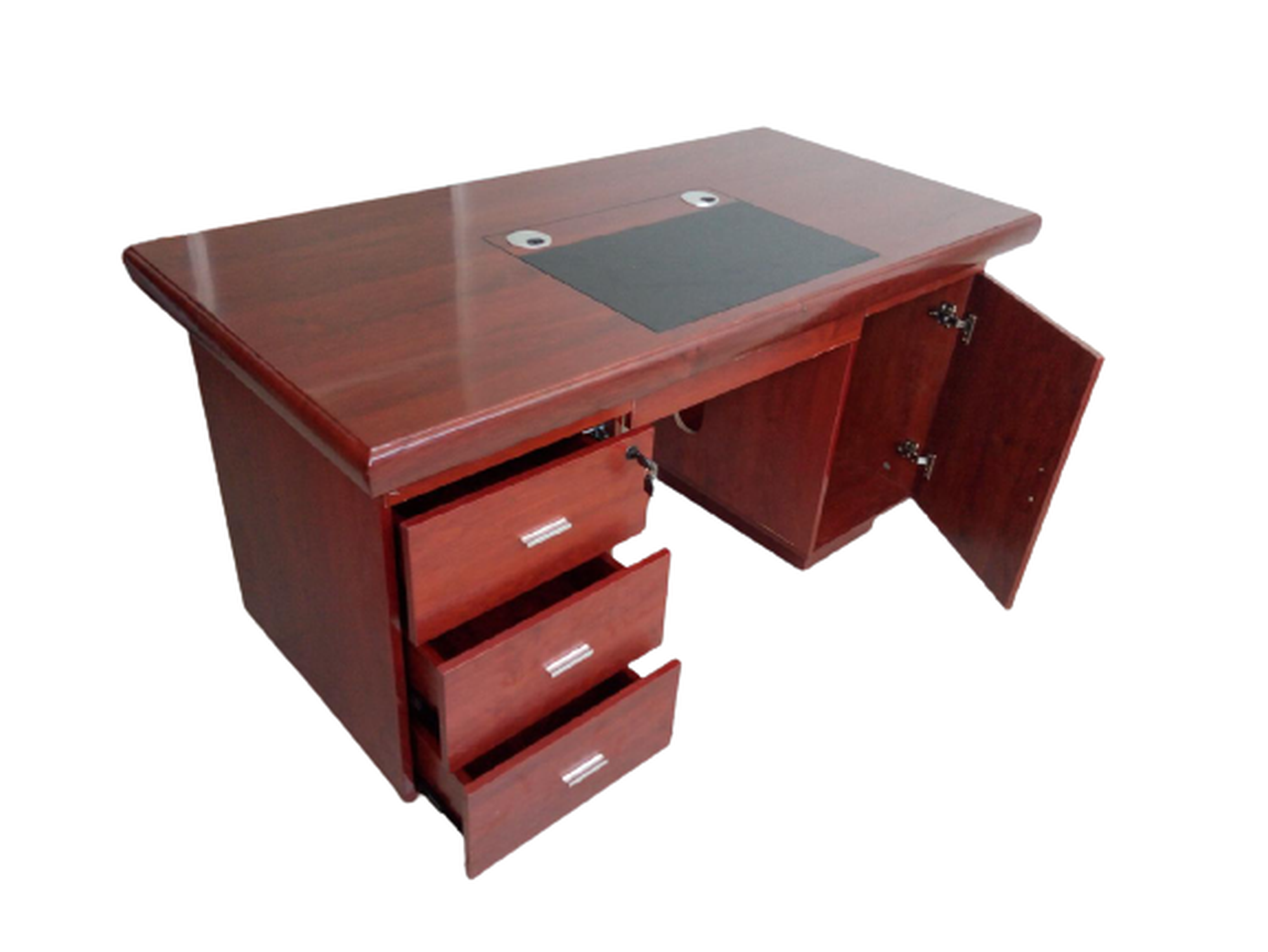 Office Desk On Sale in Nairobi, Mombasa Road with desk drawers to declutter your office and keep it well organized. Made of cherry and oak hardwoods to give your workstation an elegant look. This desk has three lockable drawers to safeguard your documents and is approximately 1.4 meters long.