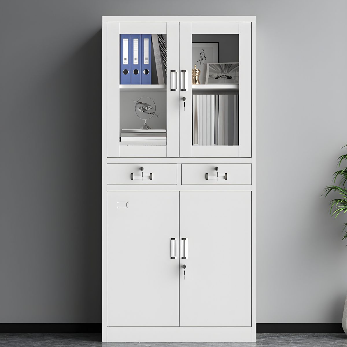 Constructed with high-quality metal, our office cabinet ensures durability and long-lasting use. The sturdy construction and reinforced doors provide added security for your valuables, giving you peace of mind knowing your belongings are safely stored.