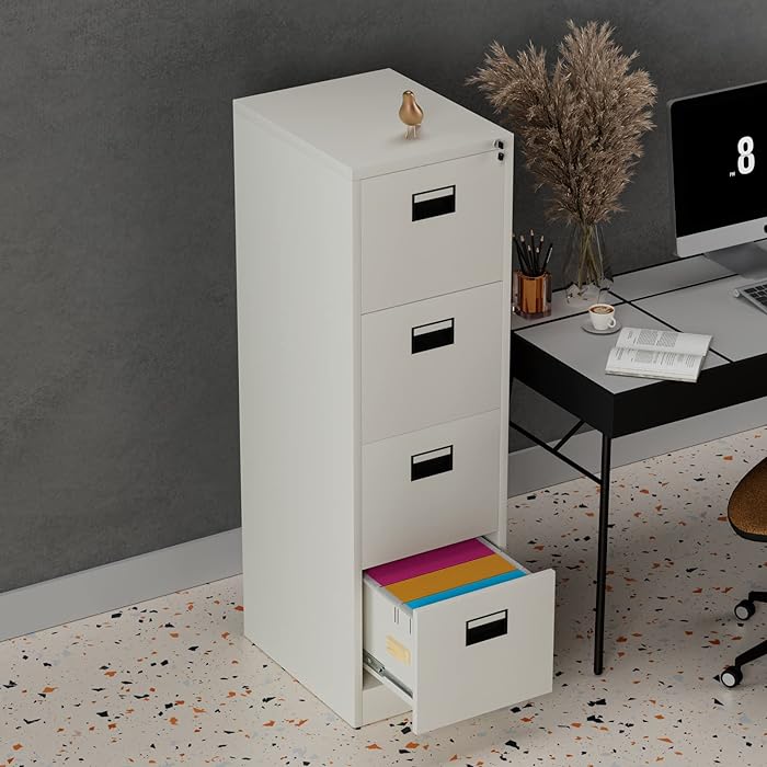 Featuring four spacious drawers, our filing cabinet provides ample storage space to keep your paperwork neatly organized and easily accessible. Whether you’re storing letter-sized documents, legal files. Or office supplies. Each drawer offers sufficient room to accommodate a variety of items, helping you maintain a clutter-free work environment.