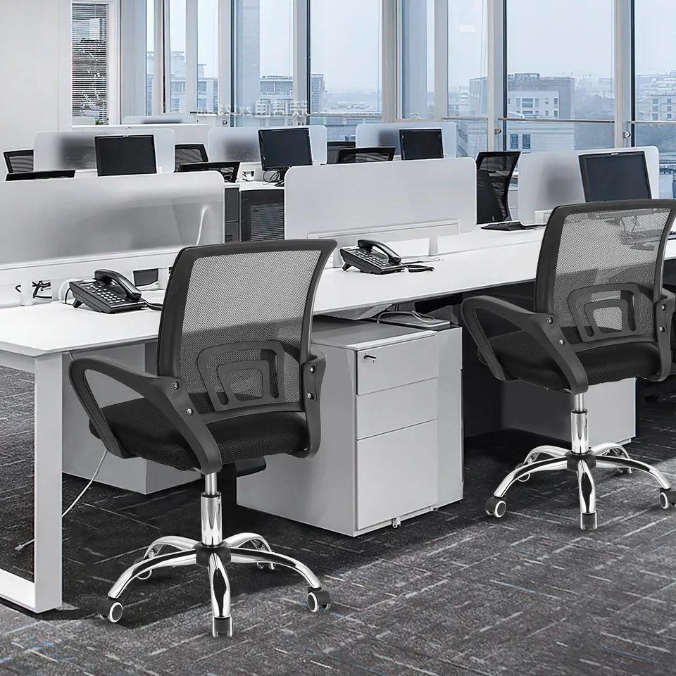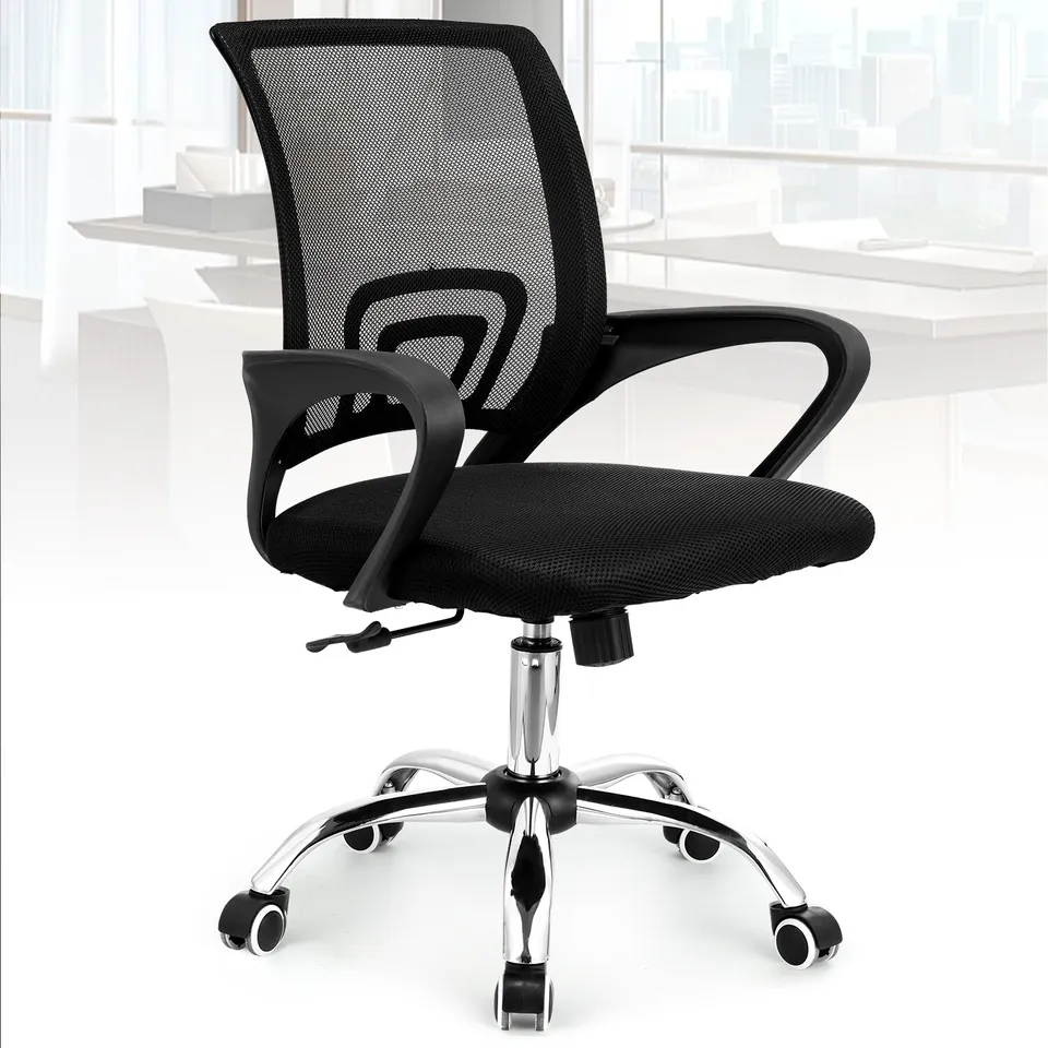 - Materials: Mesh backrest, cushioned fabric seat, sturdy metal frame